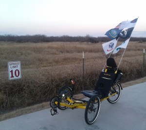 I am a 47 year old disabled United States Navy veteran that is attempting to ride my recumbent trike around the borders of the United States (12,000) to raise awareness for veterans that are suffering from the effects of PTSD and to raise $25,000 for Christian Warriors Retreat Center. View all posts by texastrikker